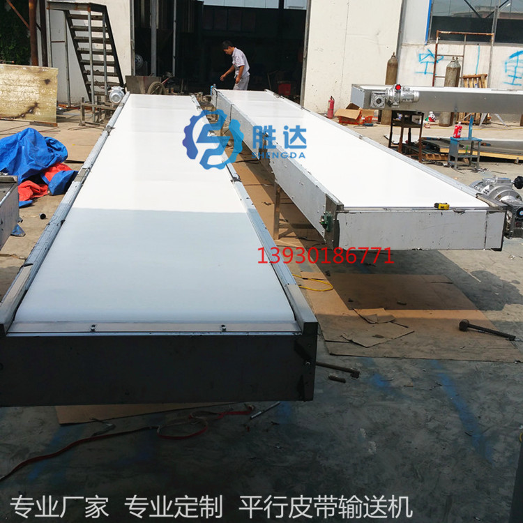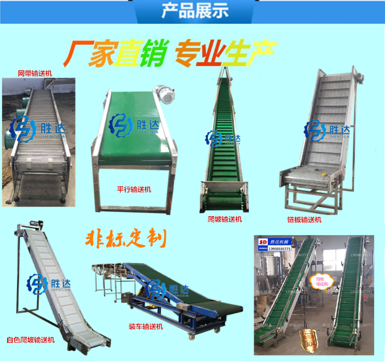 結(jié)構(gòu)形式有:槽型皮帶機(jī)、平型皮帶機(jī)、爬坡皮帶機(jī)、轉(zhuǎn)彎皮帶機(jī)等多種形式,輸送帶上還可增設(shè)提升擋板、裙邊等附件,能滿足各種工藝要求。輸送機(jī)兩側(cè)配以工作臺(tái)、加裝燈架,可作為電子儀表裝配,食品包裝等裝配線。