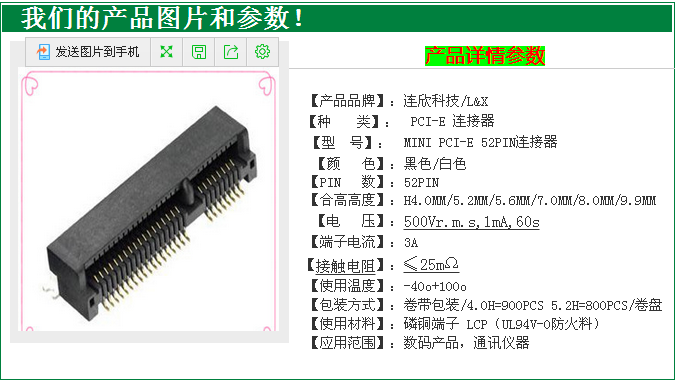深圳市連欣科技有限公司廠家現(xiàn)貨供應(yīng):PCI-E 144PIN轉(zhuǎn)接板 PCI連接器,PCI-E連接器座子,MINI PCI-E連接器,PCI52PIN連接器,以優(yōu)惠價(jià)格供應(yīng)市場(chǎng),公司始終秉持“ 品質(zhì)第一,信譽(yù)為本,彈性服務(wù),永續(xù)經(jīng)營 ”為宗旨,為廣大新老客戶準(zhǔn)時(shí)提供滿意之產(chǎn)品價(jià)格以實(shí)惠,歡迎來電詳詢:王小姐18688784599 QQ:2099385828 連擇連欣連接器,連擇放心合作伙伴!
