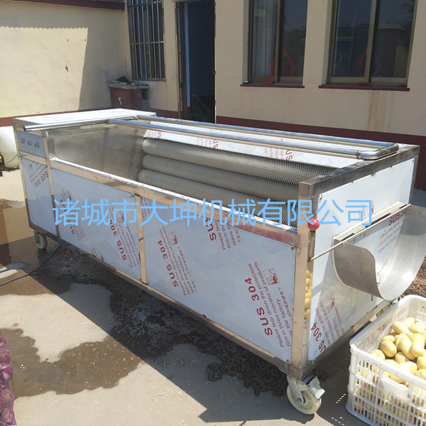 大坤機(jī)械專業(yè)供應(yīng)毛輥式地瓜去泥清洗機(jī),采用毛刷原理,廣泛適用于圓形,橢圓形果蔬比如生姜等,可對(duì)馬鈴薯、紅薯等根薯類蔬菜的清洗、脫皮。該機(jī)具有外形美觀和操作方便,清洗脫皮容積大、效率高,耗能小,可連續(xù)清洗,操作簡(jiǎn)單,使用壽命長(zhǎng)等特點(diǎn),根薯蔬菜毛輥清洗機(jī)刷輥材料經(jīng)特殊工藝處理,經(jīng)久耐用,耐磨性能好。箱體采用優(yōu)質(zhì)不銹鋼材質(zhì),不銹蝕、清潔衛(wèi)生?筛鶕(jù)客戶要求定制。全不銹鋼制作,符合國(guó)家食品衛(wèi)生標(biāo)準(zhǔn);整機(jī)結(jié)構(gòu)設(shè)計(jì)合理,簡(jiǎn)單實(shí)用,安裝、維護(hù)方便;配噴淋清洗管道,及手動(dòng)趕果裝置,機(jī)架焊接結(jié)構(gòu)堅(jiān)固耐用,整機(jī)運(yùn)行平穩(wěn)、無噪音、確保無故障運(yùn)行;采用高品質(zhì)、高韌性毛刷,經(jīng)久耐用; 根薯蔬菜毛輥清洗機(jī)毛刷輥采用波浪形獨(dú)特設(shè)計(jì),使水果能夠在前行時(shí)得到全方位360度完全清洗,更有效去除水果表面的污垢物。
