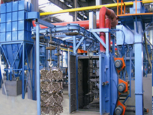 吊鉤式拋丸清理機(jī)適合于鑄造、建筑、化工、電機(jī)、機(jī)床等行業(yè)的中、小型鑄、鍛件的表面清理或強(qiáng)化處理。特別適合于多品種、小批量的鑄件、鍛件、鋁合金鑄件及鋼結(jié)構(gòu)件進(jìn)行表面清理及拋丸強(qiáng)化,以去掉工件表面的少量粘砂、砂芯及氧化皮;亦適合于對(duì)熱處理件的表面清理及強(qiáng)化;尤其適合于不宜碰撞的細(xì)長(zhǎng)、薄壁件的清理。 吊鉤式拋丸機(jī)具有以下優(yōu)點(diǎn): 1. 采用大拋丸量、高拋射速度的國(guó)際先進(jìn)懸臂式離心拋丸器,能顯著地提高清理率、獲得滿意的清理質(zhì)量。 2. 模擬拋射圖及拋丸機(jī)的全部圖紙均完全采用計(jì)算機(jī)輔助設(shè)計(jì)(CAD)繪制,拋丸器的選用及布置更為合理。 3. 采用倍受歡迎的無(wú)地坑結(jié)構(gòu)形式,即節(jié)省了地坑基礎(chǔ)的施工費(fèi)用及時(shí)間,又解決了用戶因地坑存水而造成的提升機(jī)內(nèi)的丸砂銹蝕結(jié)塊問(wèn)題。吊鉤具有升降、運(yùn)行和室內(nèi)旋轉(zhuǎn)的功能。 4. 清理室內(nèi)采用高鉻板防護(hù),使用壽命大大提高,外形美觀、易于更換。 |