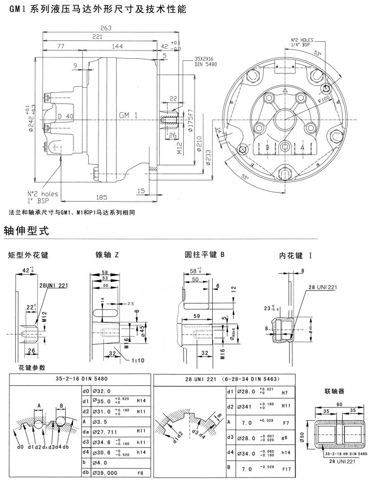 主要特點(diǎn)如下: 1) 由于活塞與擺缸不存在側(cè)向力,活塞底部設(shè)計(jì)成靜壓平衡,活塞與曲軸之間通過滾動(dòng)軸承傳扭力,這些均減少了傳動(dòng)過程中摩擦損失。因而GM系列液壓馬達(dá)具有很高的機(jī)械效率,高的起動(dòng)扭矩(起動(dòng)時(shí)機(jī)械效率0.92以上)的特點(diǎn)。 2) 平面配流器簡單可靠,提高了密封性能,因而低速穩(wěn)定性好,泄漏很少。活塞與擺缸之間用塑料活塞環(huán)密封無泄漏,因而具有很高的容積效率(可達(dá)0.98)。 3) 由于結(jié)構(gòu)上減少了摩擦損失,提高了密封性能,因而低速穩(wěn)定性好,可在1r/min工況下平穩(wěn)運(yùn)轉(zhuǎn),調(diào)速范圍大(速度調(diào)節(jié)比可達(dá)1000) 4) 由于活塞與軸承套通過卡環(huán)貼牢不存在間隙,因而該系列液壓馬達(dá)可以做泵工況下運(yùn)轉(zhuǎn),當(dāng)進(jìn)油口封閉后馬達(dá)可以在自由輪工況下高速運(yùn)轉(zhuǎn)。 5) 該系列液壓馬達(dá)壓力高,最高壓力可大45MPa。重量輕、體積小、功率高。 6) 由于結(jié)構(gòu)簡單,設(shè)計(jì)合理,采用負(fù)荷能力大的軸承,因而工作可靠、壽命長、噪音低、傳動(dòng)軸允許承受徑向負(fù)荷,旋轉(zhuǎn)方向可逆轉(zhuǎn)。 作用 由于GM系列液壓馬達(dá)具有上述一系列特點(diǎn),故廣泛應(yīng)用于塑料機(jī)械、輕工機(jī)械、冶金機(jī)械、礦山機(jī)械、起重運(yùn)輸設(shè)備、重型機(jī)械、石油煤礦機(jī)械、船舶甲板機(jī)械、機(jī)床、地質(zhì)鉆探設(shè)備等各種機(jī)械的液壓傳動(dòng)系統(tǒng)中。特別使用于提升絞盤 卷筒驅(qū)動(dòng) 各種回轉(zhuǎn)機(jī)械驅(qū)動(dòng) 履帶和輪子行走驅(qū)動(dòng)等傳動(dòng)機(jī)械中。 ![]()