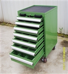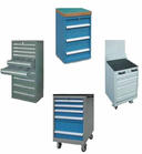 工具車的外型尺寸的高度;重型工具車為所選用的工具柜的高度加上140mm;輕型工具車為所造工具柜高度加上80mm。 3 單軌工具車抽屜帶有互鎖裝置,抽屜帶有安全扣,可以防止工具車在移動當抽屜意外滑出。 4 堅固的腳輪能經(jīng)受不平場地的沖擊。 5 帶剎車的萬向輪剎住后可固定工具車。 6 頂部帶防油橡膠墊的頂框,使放置于頂部的物品不容易滑落。