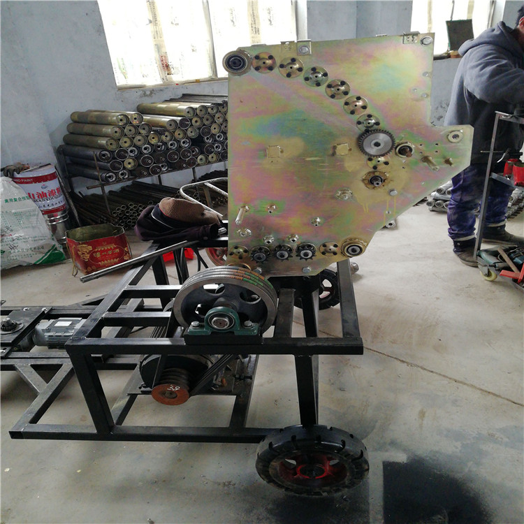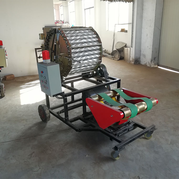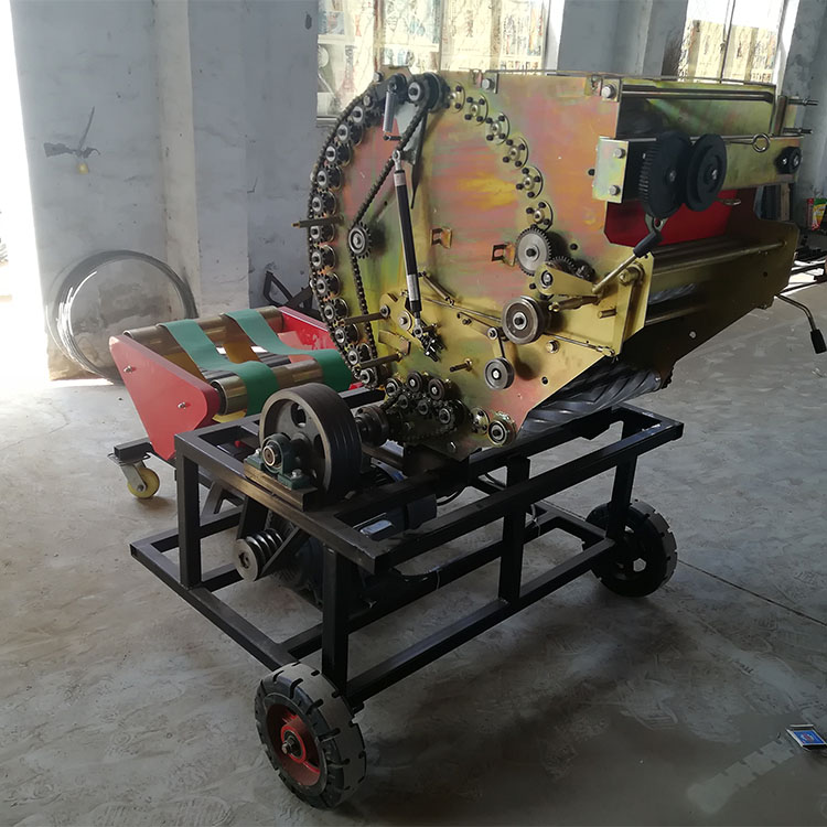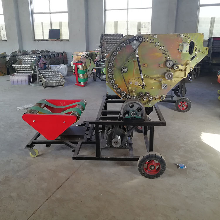 秸稈青貯打捆機(jī)由打捆、包膜兩部分組成,在開始使用一體機(jī)作業(yè)時(shí),我們應(yīng)先把麻繩放在打捆機(jī)上,將麻繩穿好放到夾線管內(nèi),然后把送膜卷按說明書要求方向,套入輸膜架支撐軸,放好首先通過機(jī)器前部人工給固定倉喂料,當(dāng)草捆大到固定倉和活動(dòng)倉接觸到一定密實(shí)度時(shí),活動(dòng)倉上方的惰性輥和左側(cè)的信號(hào)輪會(huì)均勻轉(zhuǎn)動(dòng),操作者板動(dòng)繞線離合手柄,機(jī)器開始往復(fù)饒繩捆扎,繞繩一周,麻繩自動(dòng)切斷,立即開倉放捆,草捆通過輸送帶直接落入包膜機(jī)的旋轉(zhuǎn)架上,用手把膜拉出,啟動(dòng)旋轉(zhuǎn)按鈕,旋轉(zhuǎn)架帶動(dòng)草捆轉(zhuǎn)動(dòng),操作者應(yīng)同步迅速將膜壓向草捆中部,并隨著草捆旋轉(zhuǎn)一周,然后立即松手,青貯PE膜逐漸逐層包裹在草捆外,草捆自隨著旋轉(zhuǎn)架公轉(zhuǎn),當(dāng)包膜到設(shè)定的層數(shù)時(shí)(如三層),離合器自動(dòng)脫開,旋轉(zhuǎn)架停下,操作員在草捆和輸膜架之間把牧草膜切斷,把牧草膜斷頭一端壓入草捆端面重疊處,然后將包膜好的草捆從包膜機(jī)上面取下,擺放整齊,最高碼放不要超過四個(gè)包,因?yàn)樘咛厝菀装炎钕聦拥哪鹤冃危斐煽諝膺M(jìn)入,從而造成草料變質(zhì)霉壞