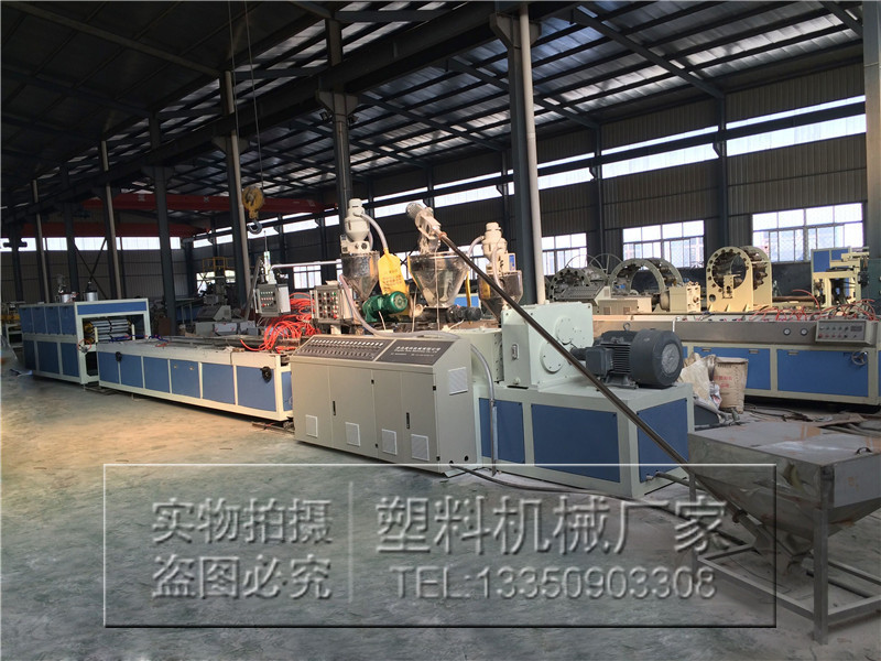 PVC護墻板生產(chǎn)線是我公司早年結(jié)合商場所需,引入國外精細技術自主研制的一款主動化式的PVC護墻板生產(chǎn)線,它可以依據(jù)客戶所需出產(chǎn)不同規(guī)格不同厚度及不同分量的護墻板,并且只需求更換擠出磨具就好了,此類型的出產(chǎn)線可以依據(jù)商場所需來挑選是否需求共擠(邊料),整條生產(chǎn)線具有主動化程序高、所需人力少、節(jié)能減耗、出產(chǎn)效率高、整條出產(chǎn)線都選用變頻調(diào)速可以下降百分之五十的能耗等優(yōu)點。