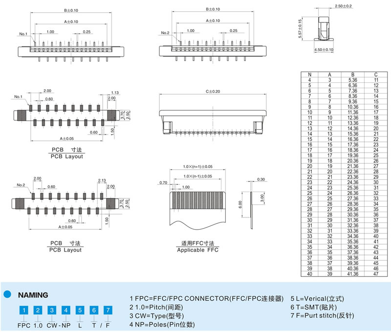 | 1.0mm間距 帶鎖抽屜式 立貼錯位 FPC |