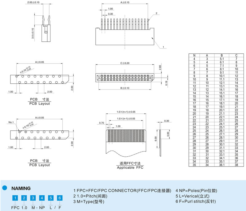 | 1.0mm間距 雙面接觸 立式直插直腳 H=5.5MM |