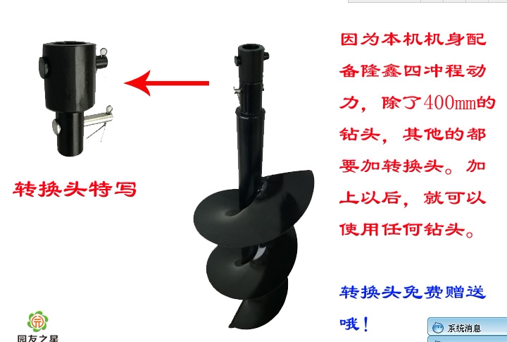 采用四沖程173CC大馬力發(fā)動(dòng)機(jī),適合長(zhǎng)時(shí)間大量工作,帶500MM鉆頭使用;其他小號(hào)鉆頭都有可以通用。