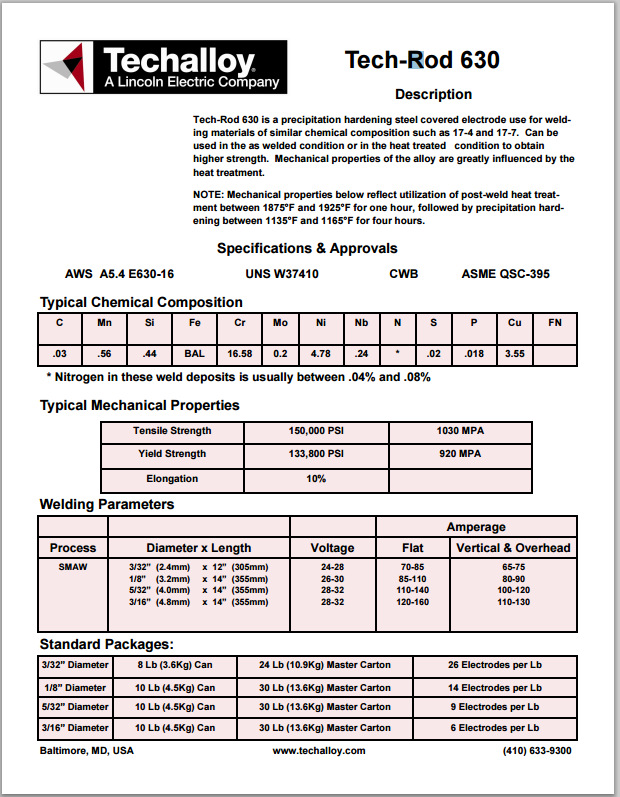 | Tech-Rod 630不銹鋼焊條 E630-16焊條價(jià)格 |