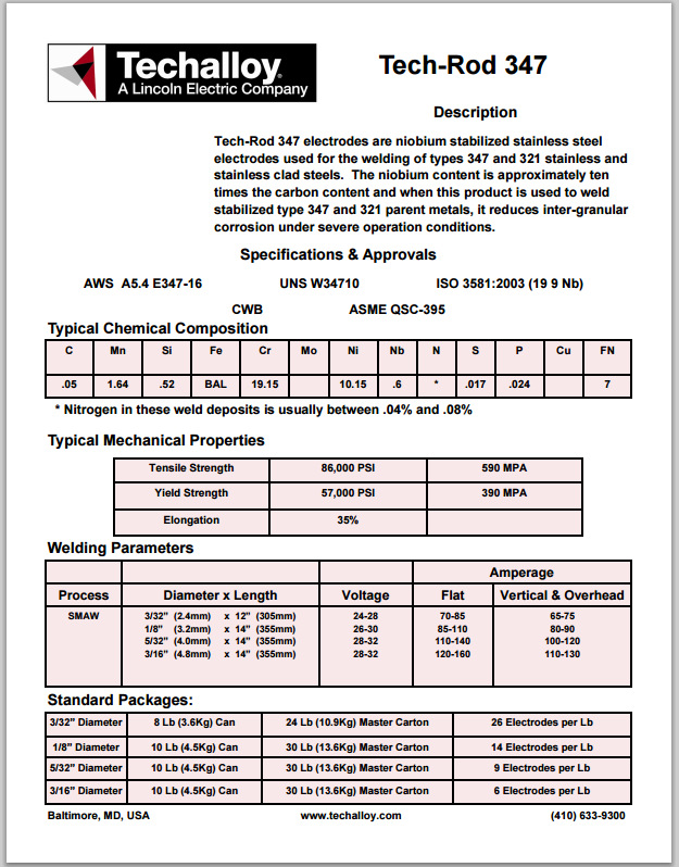 Tech-Rod Weld A ENiCrFe-2抗蠕變接頭的焊接、異種材料焊接;馬氏體鋼、鐵素體鋼和高鎳合金的焊接,含鎳 9 %合金鋼焊接