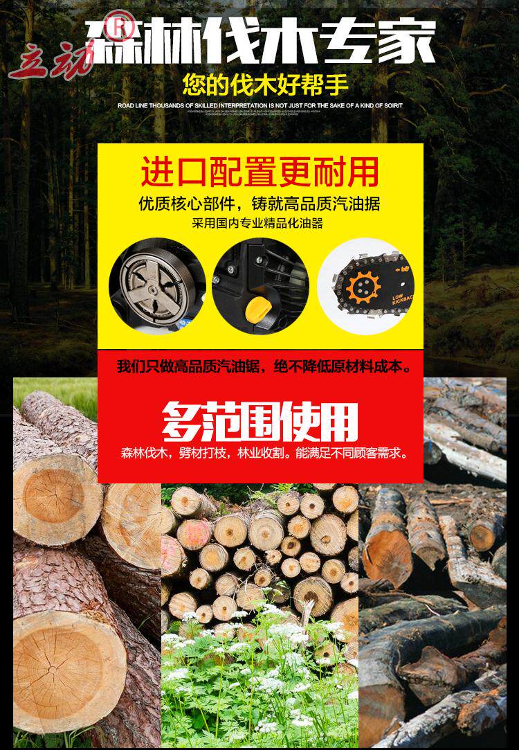 ●使用場合 汽油鏈鋸使用注意事項(xiàng): 店家一再提醒:一定要用二沖程的機(jī)油拿來兌,汽油:二沖程機(jī)油=25:1,錯誤操作,動力拉缸了,不在保修范圍內(nèi)!謝謝配合!