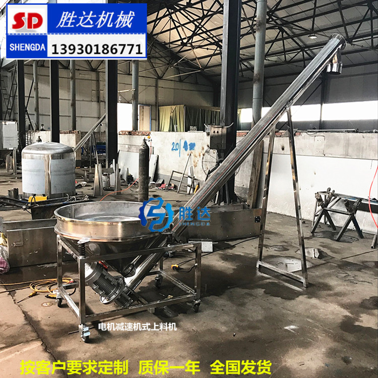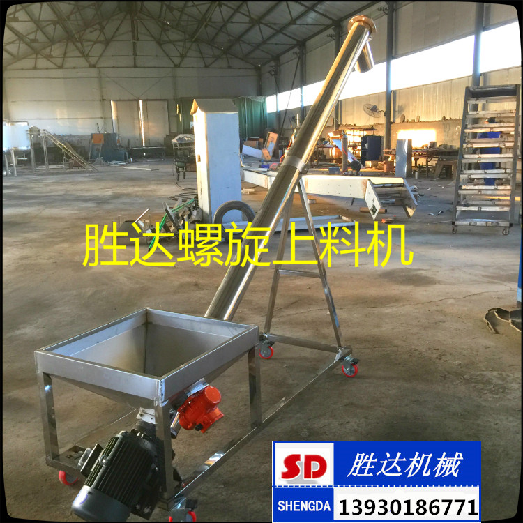 SD系列不銹鋼螺旋上料機(jī)(又名螺桿上料機(jī)),為塑料加工,食品加工機(jī)械所需的配套輔機(jī),可將粉末或顆粒相關(guān)的原料直接自動(dòng)輸送至料斗內(nèi),是高速混合機(jī)專(zhuān)用設(shè)備。接觸物料采用不銹鋼制作,輸送過(guò)程原料完全不受污染,不帶入任何異物,能使生產(chǎn)過(guò)程中實(shí)現(xiàn)全封閉自動(dòng)化。 特點(diǎn):安全方便、并可移動(dòng),如多臺(tái)攪拌機(jī)使用同一種料,只需一臺(tái)上料機(jī)可同時(shí)供多臺(tái)攪拌機(jī)上料,免除人工加料的麻煩,使加料工作變的更安全、更省事、更省力。 常規(guī)不銹鋼螺旋提升機(jī)技術(shù)參數(shù)●輸送高度: ?mm(特殊要求可定做) ●功率:AC380V AC220V ●整機(jī)重量: kg ●料倉(cāng)容量:100L ●輸送量:?m3/小時(shí) 參數(shù)說(shuō)明:上料機(jī)是一款將物料由低至高的輸送設(shè)備,原則是節(jié)約人工降低物 料灑地、減低損耗浪費(fèi),此款垂直上料機(jī)是我公司根據(jù)場(chǎng)地緊湊的車(chē)間,盡量節(jié)約占地面積而設(shè)計(jì)的一款不銹鋼上料設(shè)備,可以把物料通過(guò)垂直輸送方式從低至高上料。 2.整機(jī)所有與物料接觸部分全部采用304不銹鋼制造,長(zhǎng)度設(shè)計(jì)范圍1米---12米均可定做,上料管直徑60MM—500毫米可根據(jù)客戶要求設(shè)計(jì),主軸電機(jī)功率根據(jù)客戶要求及物料選擇而定。 3.不銹鋼送料管內(nèi)壁與螺旋葉片間隙距離不大于3mm。螺旋葉片激光切割加工,所有焊接口拋光處理以達(dá)到光滑不殘留物料; 4.輸送料的速度在每小時(shí)100KG—15噸以上。 5.采用進(jìn)口萬(wàn)向軸承隔熱防塵設(shè)計(jì),上料機(jī)兩頭設(shè)計(jì)安裝有臺(tái)灣進(jìn)口油封,確保粉塵及雜物進(jìn)入軸承,以達(dá)經(jīng)久耐用的目的, 6.科學(xué)設(shè)計(jì):螺旋軸采用不銹鋼無(wú)縫管,經(jīng)車(chē)床校正,確保同心度,機(jī)器運(yùn)行穩(wěn)定,葉片全部采用不銹鋼材料。葉片采用加厚不銹鋼葉片。 7:底部設(shè)計(jì)有清料口,如需換料,只需要用風(fēng)槍吹下即可將小部分殘料清除。并在清料口出設(shè)計(jì)安全開(kāi)關(guān),一旦開(kāi)啟清料門(mén)即斷電,安全可靠。