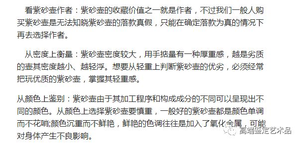 從材質(zhì)上鑒別:紫砂壺因為其材質(zhì)聞名,所以鑒別紫砂壺主要看其材質(zhì)。宜興紫砂泥主要是由黏土、石英、云母構(gòu)成,富含鐵元素。這些礦物質(zhì)使得紫砂壺觸感細膩,但是并不光滑;而觸感粗糙的紫砂壺要么是假泥,要么是在某道工序上出了問題。