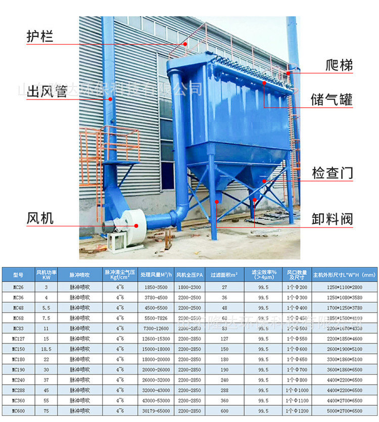 4. 采用上部抽袋方式,換袋時抽出骨架后,臟袋投入箱體下部灰斗,由入孔處取出,改善了換袋操作條件。