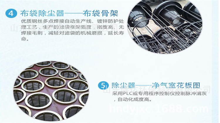 結(jié)構(gòu) 1、上箱體:包括可掀起的蓋板(或緊固式蓋板)和出風(fēng)口。 2、中箱體:包括多孔板、檢修門、濾袋、龍骨、文氏管等。 3、下箱體:包括測(cè)壓接頭等。 4、噴吹系統(tǒng):包括脈沖控制儀、電磁脈沖閥、噴吹管、氣包