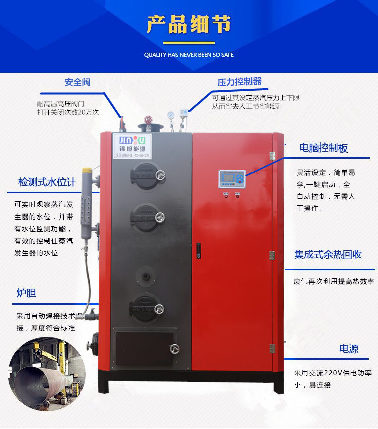 錦旭能源專注研發(fā):生物質(zhì)蒸汽發(fā)生器/燃油燃?xì)庹羝l(fā)生器/電蒸汽發(fā)生器/取暖熱水爐等能源設(shè)備、歡迎各位朋友前來加盟洽談合作。 服務(wù)熱線:18765786088