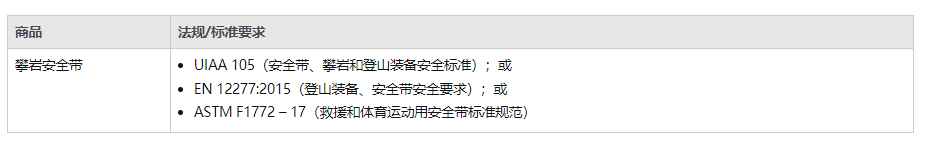 攀巖安全帶如果您在亞馬遜商城發(fā)布商品,則必須遵守適用于這些商品和商品信息的所有聯(lián)邦、州和地方法律以及亞馬遜政策(包括本政策)。本政策適用的攀巖安全帶本政策適用于主要在攀巖或登山期間使用且使用者雙腳不接觸地面時(shí)使用的安全帶。安全帶是一種攀巖裝備,通過與攀巖繩或錨點(diǎn)掛接來為使用者提供安全防護(hù)。我們的攀巖安全帶政策根據(jù)亞馬遜要求,所有攀巖安全帶均應(yīng)經(jīng)過檢測(cè),并且符合下列特定法規(guī)或標(biāo)準(zhǔn)要求: