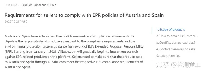 12月27日阿里巴巴國際站發(fā)布公告要求賣家遵守奧地利和西班牙EPR政策,公告如下: