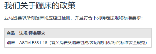我們關(guān)于蹦床的政策 亞馬遜要求所有蹦床均應(yīng)經(jīng)過檢測,并且符合下列特定法規(guī)和標準要求: