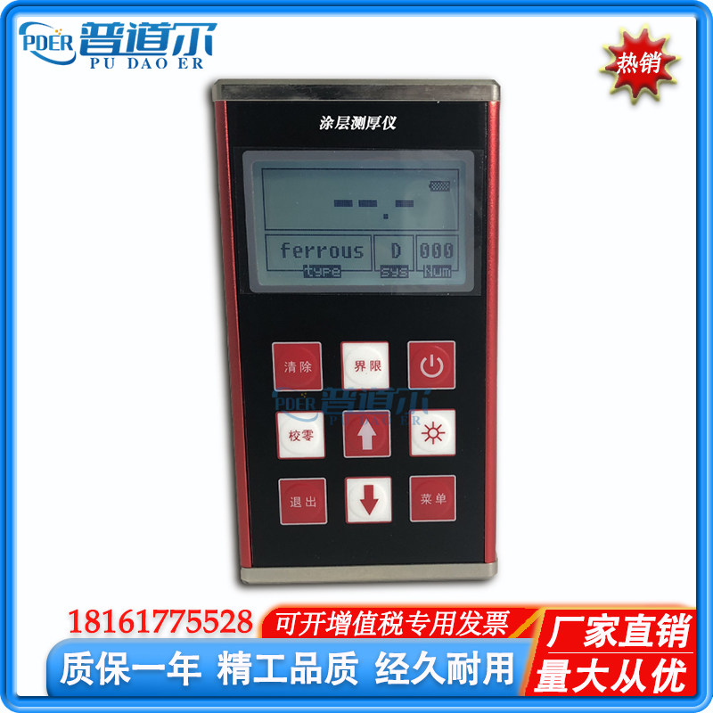 涂層測(cè)厚儀JMCH-2000手持便攜式升級(jí)款 包郵 升級(jí)款JMCH-2000涂層測(cè)厚儀參數(shù)普道爾JMCH-2000測(cè)厚儀 ?全中文界面操作,更方便; ?本儀器采用了磁性和渦流兩種測(cè)厚方法 ?可配7 種測(cè)頭F400、F1、F1/90°、F10、CN02、N1 ?可存貯495 個(gè)測(cè)量值; ?可設(shè)置限界:對(duì)限界外的測(cè)量值能自動(dòng)報(bào)警;并可用直方圖對(duì)一批測(cè)量值進(jìn)行分析; ?LCD點(diǎn)陣液晶,LED背光顯示;