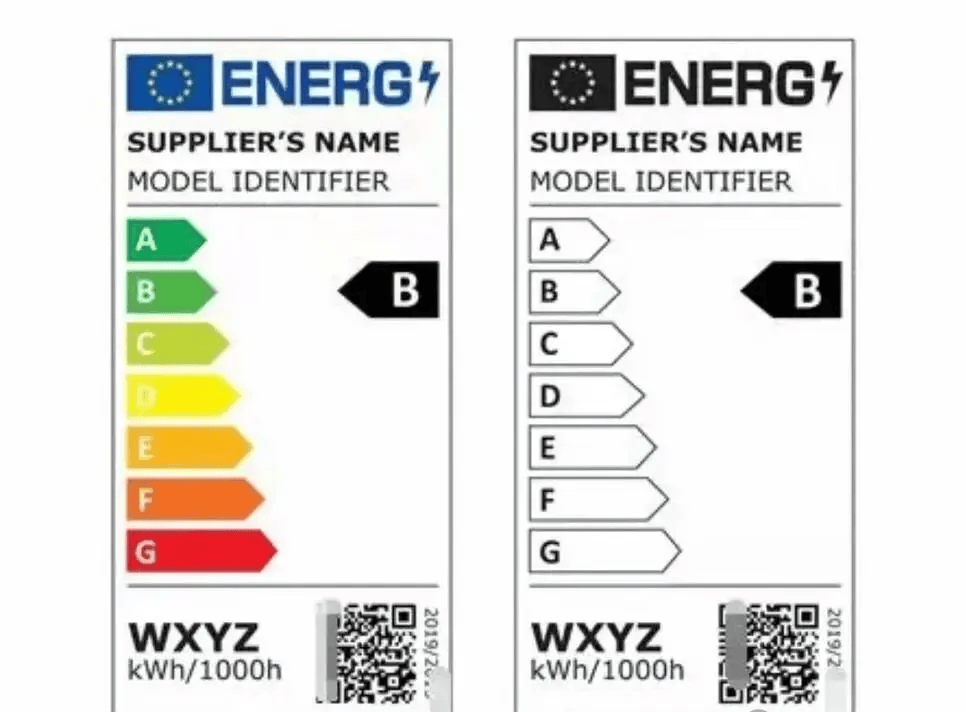 相當(dāng)于產(chǎn)品的“能效身份證”,必須清晰貼在包裝和銷售場(chǎng)所。采用A(最gao效)到G(最di效)的7級(jí)分級(jí)制度,消費(fèi)者掃碼就能查看EPREL官方數(shù)據(jù)庫(kù)的詳細(xì)能效數(shù)據(jù)。