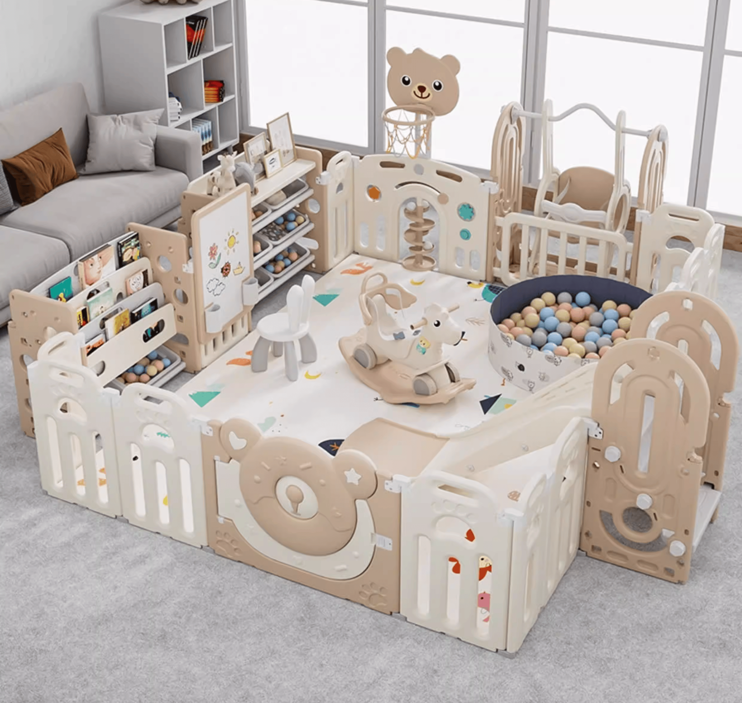 嬰兒游戲圍欄(Play Yards/Playpens)在美國需同時滿足聯(lián)邦強制標準與ASTM 自愿標準,并通過 CPSC 認可實驗室檢測,取得CPC 證書方可合法銷售與進口。游戲圍欄是一種框架式圍欄,由網狀織物或布料材質的非剛性護欄和底板組成。本政策適用于專為兒童提供睡眠和游戲環(huán)境而設計的游戲圍欄(高度低于 35 英寸 [890 毫米],兒童無法爬出)。本政策還適用于帶配件的游戲圍欄。例如,此類組合商品包括尿布臺配件、活動部件或其他玩具以及嬰兒搖籃配件。附帶配件的游戲圍欄還需符合下列要求。